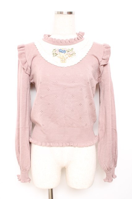 axes femme POETIQUE / リボン刺繍ブロッキングプルオーバー M ピンク Y-25-11-26-046-AX-TO-SZ-ZY