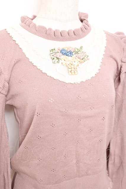 axes femme POETIQUE / リボン刺繍ブロッキングプルオーバー M ピンク Y-25-11-26-046-AX-TO-SZ-ZY [2100070000055026-Y-25-11-26-046-AX-TO-SZ-ZY]