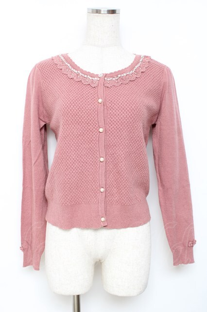 axes femme / パール配色ワッフルニットカーディガン M ピンク Y-25-11-26-049-AX-TO-SZ-ZY