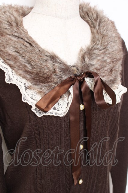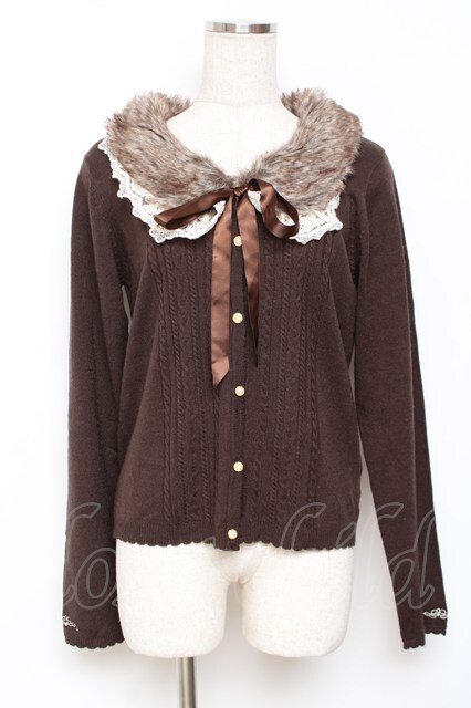 axes femme / 袖刺繍ファーティペ付きカーディガン M 茶 Y-25-11-26-050-AX-TO-SZ-ZY [2100070000055015-Y-25-11-26-050-AX-TO-SZ-ZY]