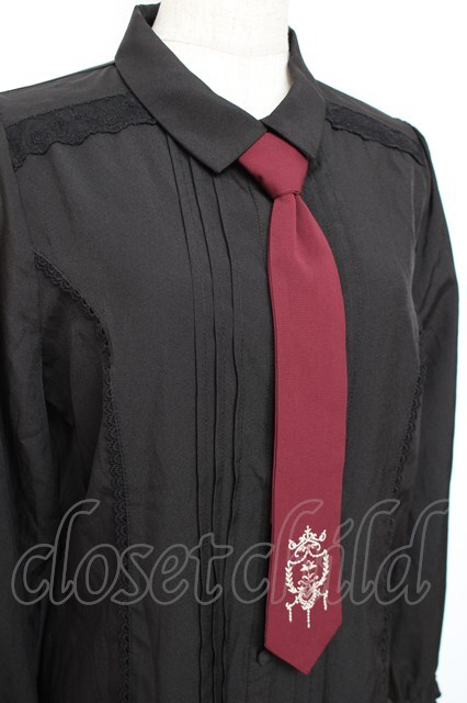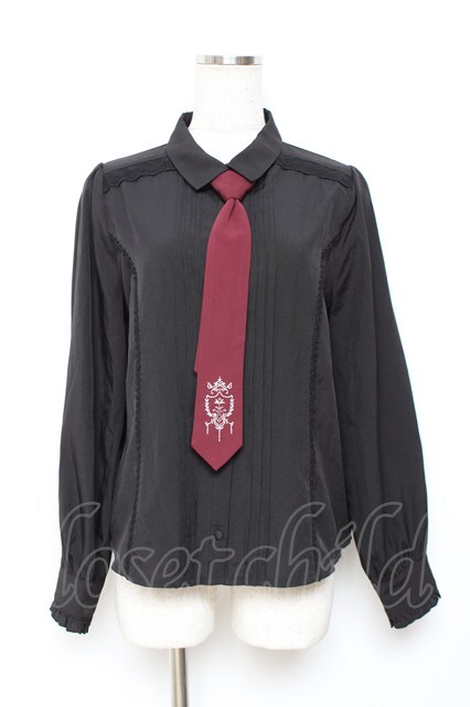 axes femme / 刺繍ネクタイ付ブラウス 黒 Y-25-11-26-063-AX-BL-SZ-ZY