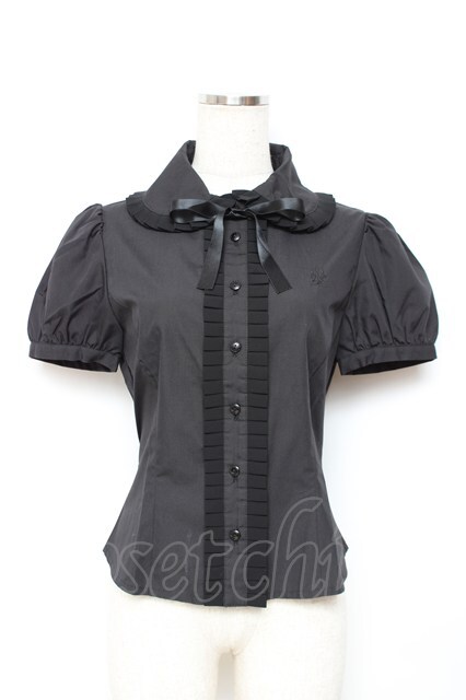 Moi-meme-Moitie / プリーツ半袖ブラウス 2 ブラック Y-25-11-26-070-MO-BL-SZ-ZY [2100070000054509-Y-25-11-26-070-MO-BL-SZ-ZY]