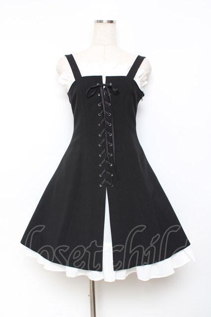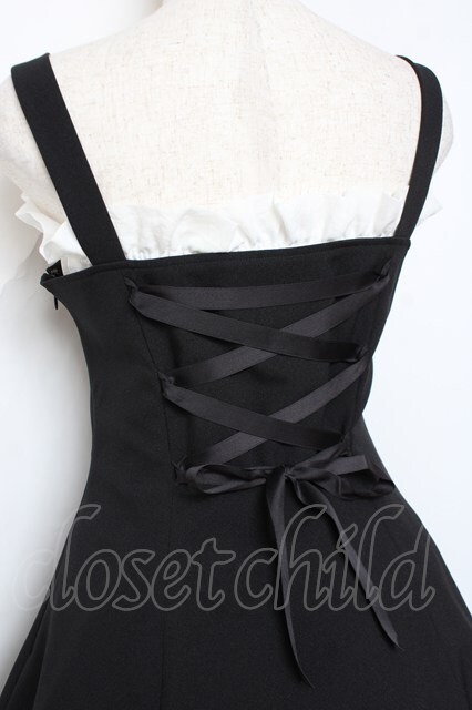 Moi-meme-Moitie / 編み上げフリルジャンパースカート 2 ブラック×ホワイト Y-25-11-26-077-MO-OP-SZ-ZY