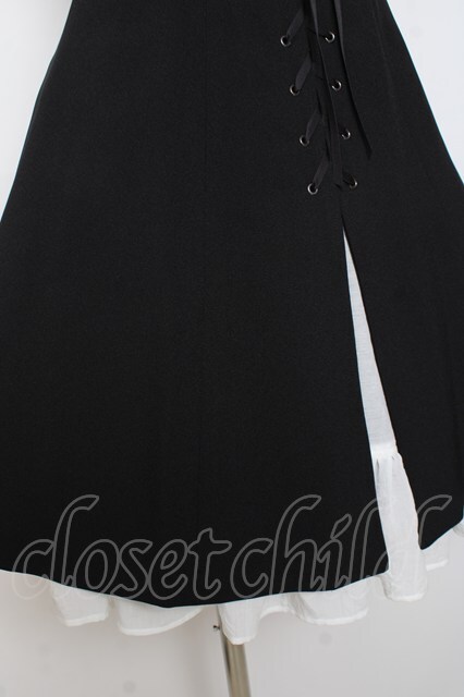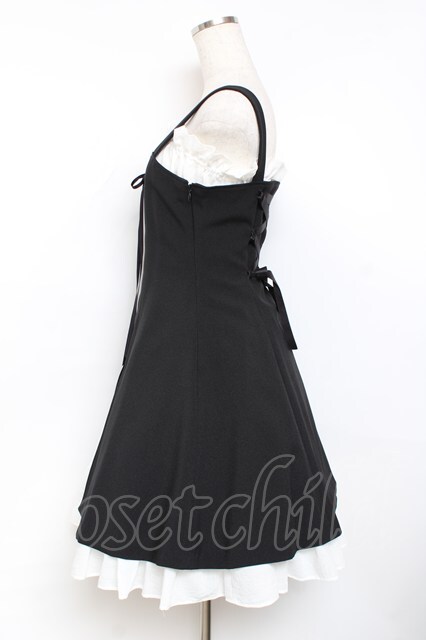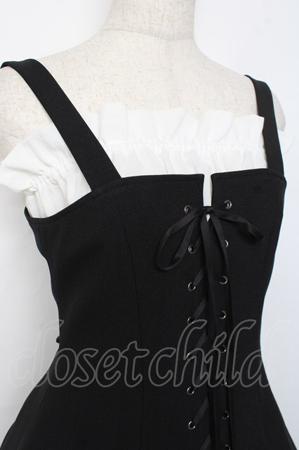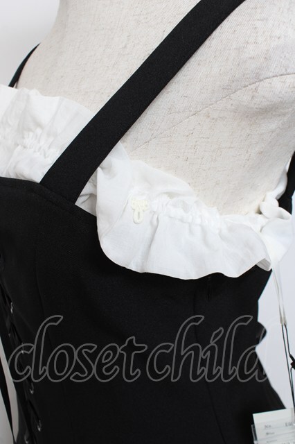 Moi-meme-Moitie / 編み上げフリルジャンパースカート 2 ブラック×ホワイト Y-25-11-26-077-MO-OP-SZ-ZY [2100070000054520-Y-25-11-26-077-MO-OP-SZ-ZY]