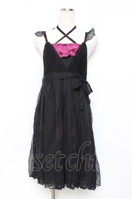 h.Jelly HONEY / プリントプリーツキャミワンピース 黒 Y-25-11-26-093-HN-OP-SZ-ZY