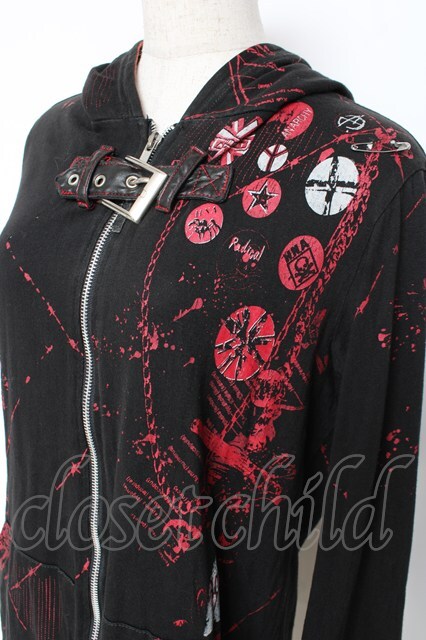 h.ANARCHY / ベルト付きプリントパーカー 黒 Y-25-11-26-097-HN-TO-SZ-ZY