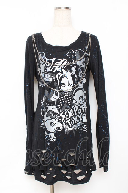 SEX POT ReVeNGe / キャラクターpt裾ダメージカットソー S 黒 Y-25-11-26-103-SP-TS-SZ-ZY