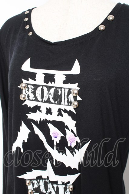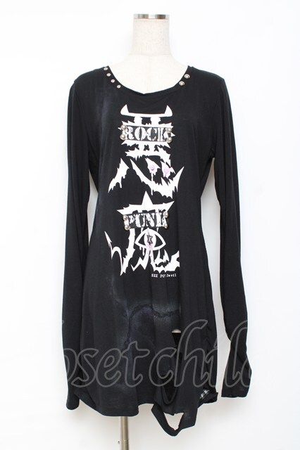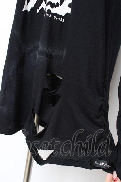 SEX POT ReVeNGe / 悪魔プリントダメージ入りロングカットソー M 黒 Y-25-11-26-106-SP-TO-SZ-ZY [2100070000054733-Y-25-11-26-106-SP-TO-SZ-ZY]