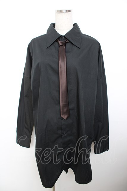 Deorart / ネクタイ付き燕尾ロングシャツ L 黒 Y-25-11-26-135-PU-BL-SZ-ZY