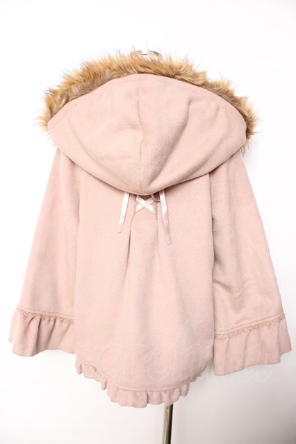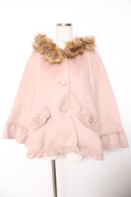 axes femme / ファーフードポンチョ風コート M 淡ピンク Y-25-11-26-145-AX-CO-SZ-ZY