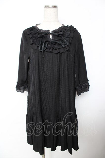 axes femme POETIQUE / ヨークレース使いプリーツワンピース 黒 Y-25-11-26-156-AX-OP-SZ-ZY