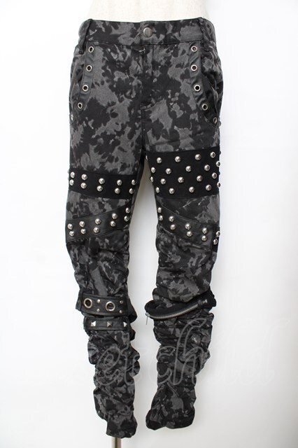 SEX POT ReVeNGe / タイダイ柄スタッズギャザーパンツ M 黒×グレー Y-25-11-26-176-SP-PA-SZ-ZY [2100070000054757-Y-25-11-26-176-SP-PA-SZ-ZY]