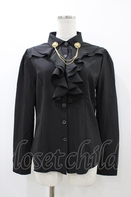 MARBLE / チェーンブローチ付ブラウス L ブラック H-25-12-02-1059-GO-BL-KB-ZH [2100030000079472-H-25-12-02-1059-GO-BL-KB-ZH]