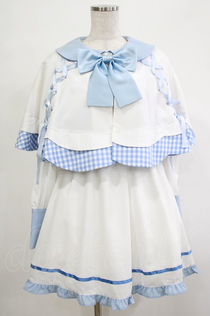 Jamie エーエヌケー / スピンドルワンピース+スカラップりぼんケープ M ホワイト/サックス H-25-12-04-042-LO-OP-NS-ZH [2100030000076451-H-25-12-04-042-LO-OP-NS-ZH]
