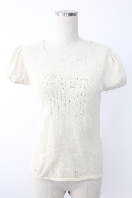 INGEBORG / ビーズデザイン半袖ニットトップス アイボリー T-25-11-28-004-LO-TO-SA-ZI