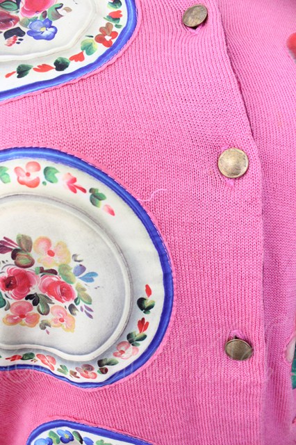 Jane Marple / マトリョーシカのデコパージュカーディガン M ピンク T-25-11-28-009-JM-TO-SA-ZI