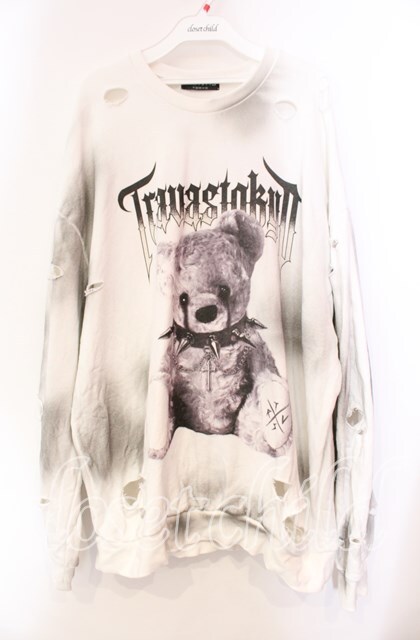 TRAVAS TOKYO / 汚し加工クマスウェットトレーナー ホワイト O-25-11-27-087-PU-TO-IG-OS