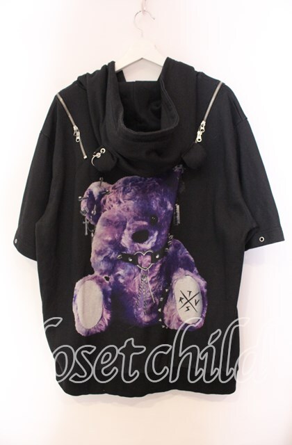 TRAVAS TOKYO / チェーン付きデザインZIPクマ半袖ジップアップパーカー ブラック O-25-11-27-088-PU-TO-IG-OS