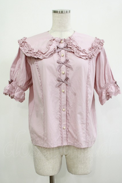 axes femme kawaii / 半袖丸襟コットンブラウス M ピンク H-25-12-05-030-AX-BL-NS-ZH [2100030000077052-H-25-12-05-030-AX-BL-NS-ZH]