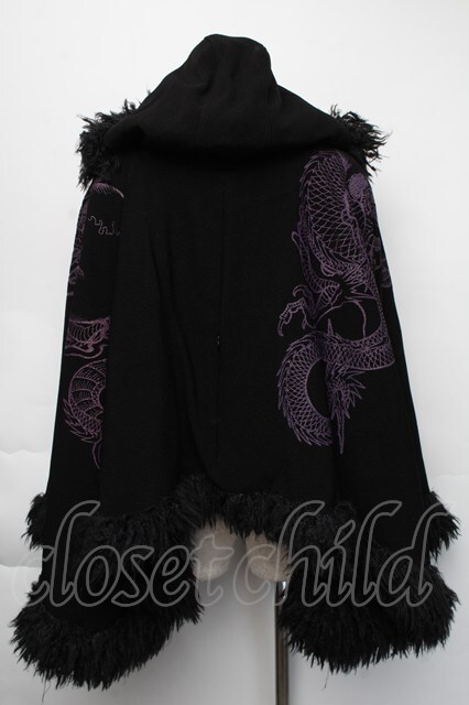 Qutie Frash / ファーフードポンチョコート 黒 S-25-11-24-026-QU-CO-AS-ZS