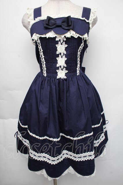 BABY,THE STARS SHINE BRIGHT / リボンスカラップジャンパースカート 紺 S-25-11-24-035-BA-OP-AS-ZS [2100020000034452-S-25-11-24-035-BA-OP-AS-ZS]