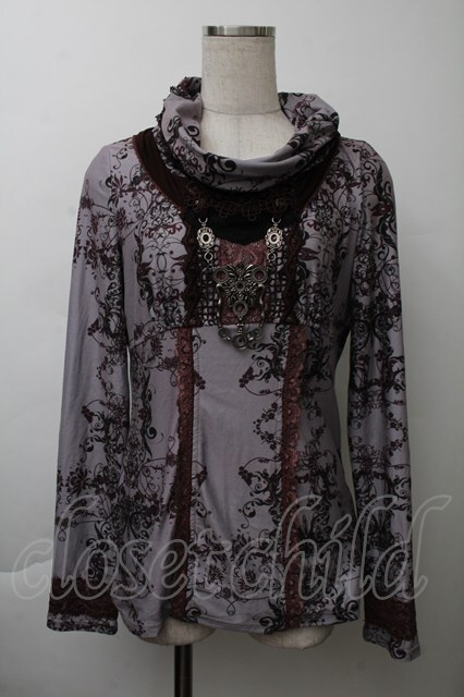 OZZ ANGELO / プリントハイネックトップス グレーxワイン S-25-11-26-017-OO-TO-HR-ZS [2100020000034482-S-25-11-26-017-OO-TO-HR-ZS]
