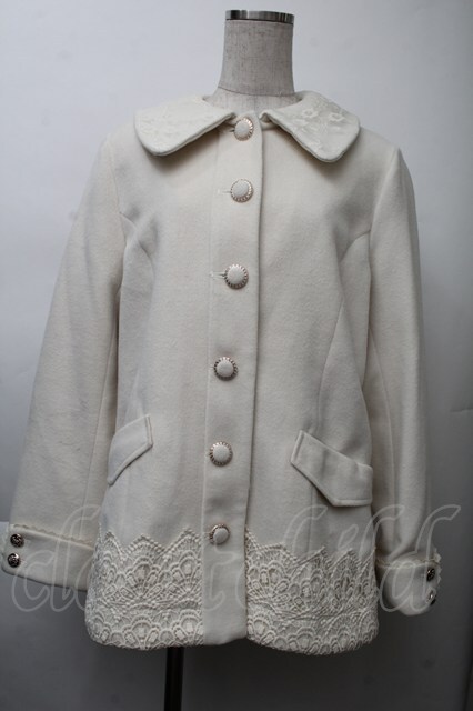 axes femme / 裾レースデザインハーフコート アイボリー S-25-11-26-027-AX-CO-HR-ZS