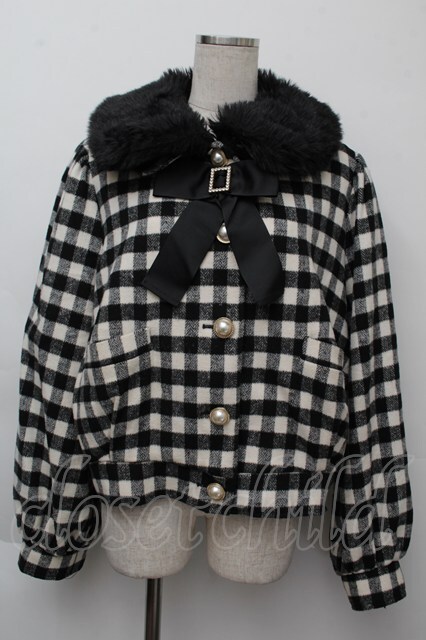 Ank Rouge / チェックドーリーショートコート 黒x白 S-25-11-26-036-CA-CO-HR-ZS