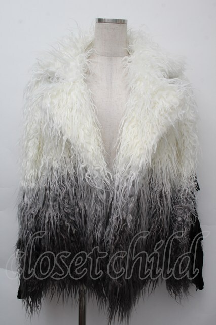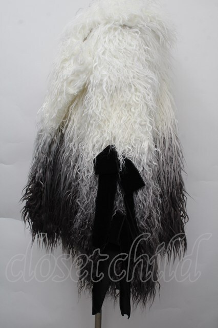 BLOOD SUPPLY(海外ブランド) / 袖リボンファーコート 黒x白 S-25-11-26-037-GO-SK-HR-ZS