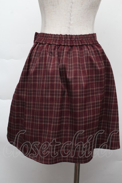 F i.n.t / ロゴ刺繍入りサイドプリーツチェックミニスカート ワイン S-25-11-26-052-CA-SK-HR-ZS