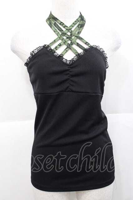 Qutie Frash / クロスキャミ 黒X緑 I-25-11-27-018-QU-TS-SA-ZI [2100060000046759-I-25-11-27-018-QU-TS-SA-ZI]