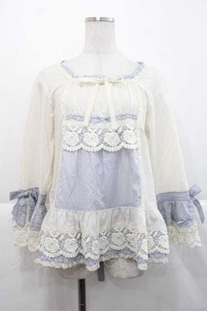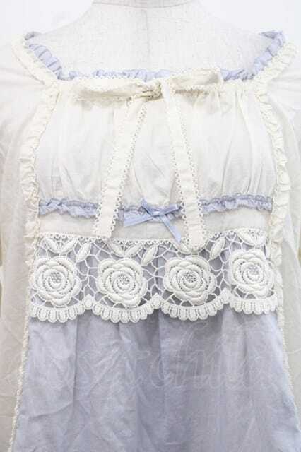 PINK HOUSE / ローズレース使いブラウス アイボリーXブルー I-25-11-27-021-LO-BL-SA-ZI [2100060000046562-I-25-11-27-021-LO-BL-SA-ZI]