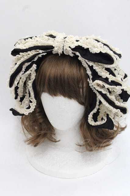 Hoshibako Works / お人形風シャンティクリームリボンカチューシャ 黒 I-25-11-27-087-LO-AC-SA-ZI [2100060000046758-I-25-11-27-087-LO-AC-SA-ZI]