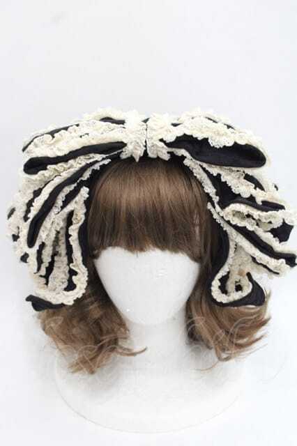 Hoshibako Works / お人形風シャンティクリームリボンカチューシャ 黒 I-25-11-27-087-LO-AC-SA-ZI