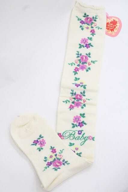 BABY,THE STARS SHINE BRIGHT / Garden Flower柄オーバーニーソックス アイボリー I-25-11-27-115-BA-ZA-SA-ZI