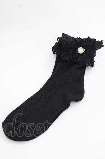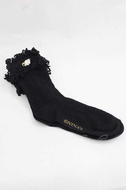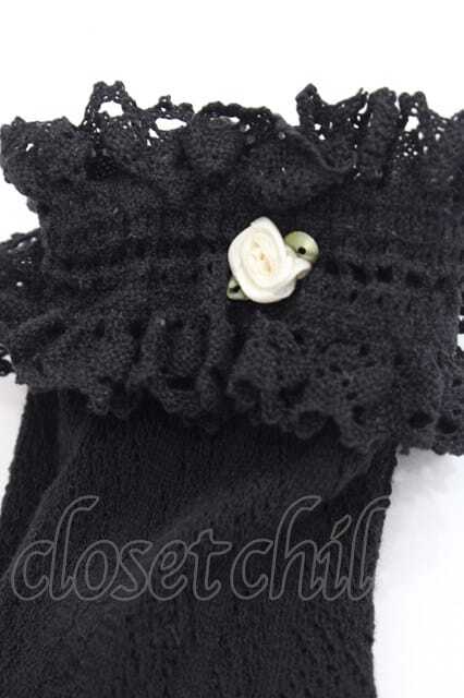 m petit by misako / プチバラ付きクルーソックス 黒 I-25-11-27-121-LO-ZA-SA-ZI