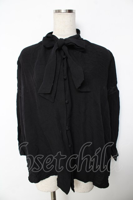 axes femme / 刺繍入りリボンロングブラウス M 黒 Y-25-11-30-066-AX-BL-SZ-ZY [2100070000054586-Y-25-11-30-066-AX-BL-SZ-ZY]