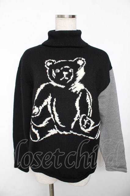 powder / テディハイネックニット F 黒×グレー Y-25-11-30-091-LO-TO-SZ-ZY