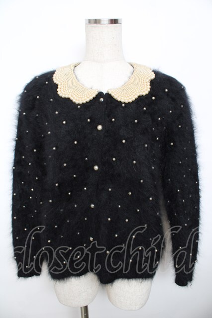PINK HOUSE / パール衿アンゴラカーディガン F 黒 Y-25-11-30-148-LO-TO-SZ-ZY