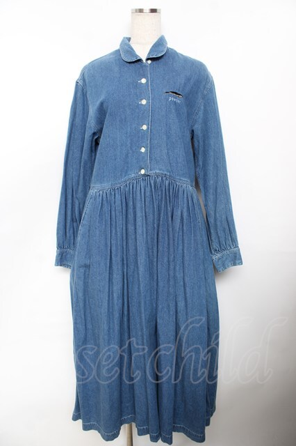 powder / くじら刺繍ソフトデニムワンピース F ウォッシュ Y-25-11-30-165-LO-OP-SZ-ZY