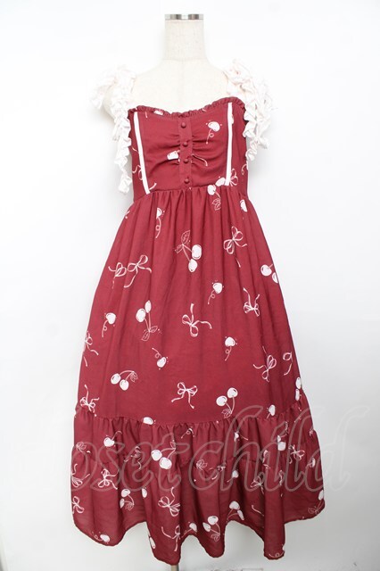 axes femme / チェリー柄フリルリボンワンピース F 赤 Y-25-11-30-185-AX-OP-SZ-ZY