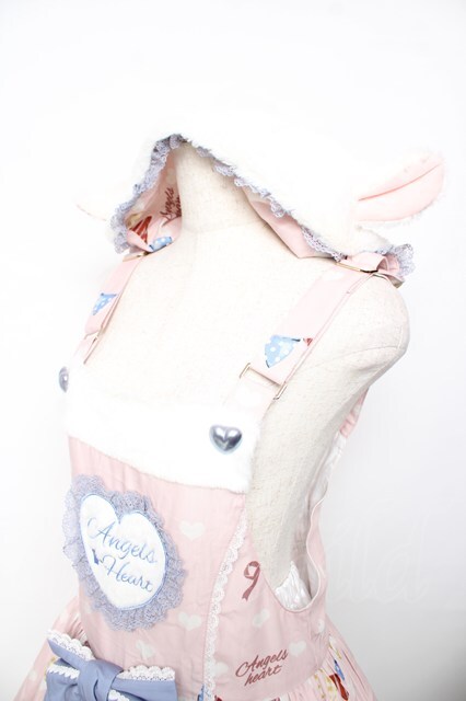 ANCEL'S HEART / ひつじプリントフードサロペット M ピンク Y-25-11-30-205-LO-OP-SZ-ZY