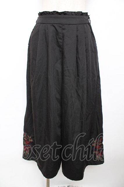 axes femme / ローズ刺繍入りガウチョパンツ M 黒 Y-25-11-30-215-AX-PA-SZ-ZY