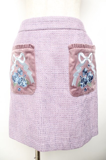 axes femme kawaii / 刺繍ポケットスカート M ラベンダー Y-25-11-30-224-AX-SK-SZ-ZY