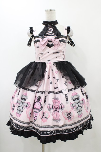 STRANGE CAT EYES(海外ロリータブランド) / ボンテージベアジャンパースカート M ピンク H-25-12-05-1040-0-OP-YZ-ZH