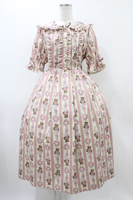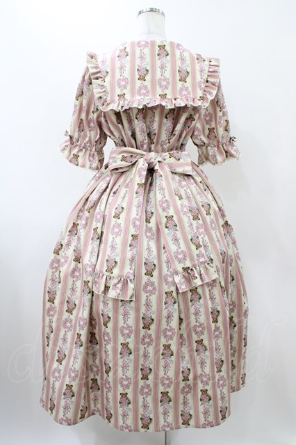 axes femme kawaii / RosyBear柄ワンピース M 生成り H-25-12-05-1029-AX-OP-NS-ZH