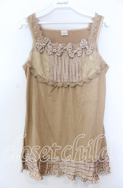 axes femme / ドットリボンタンクトップ マスタード O-25-11-28-011-AX-TO-IG-OS
