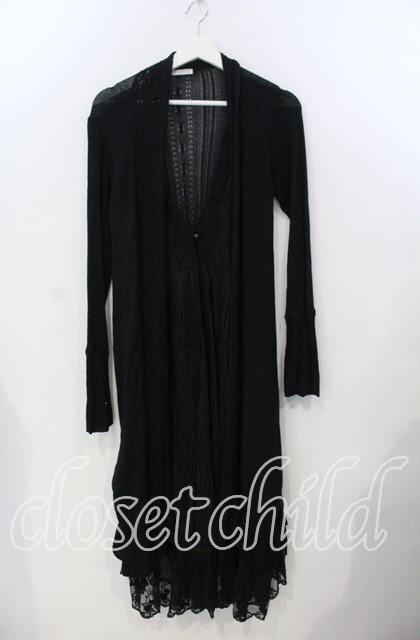 axes femme / ジレ重ね着風ロングカーデ M クロ O-25-11-28-085-AX-OP-OW-ZT1130R