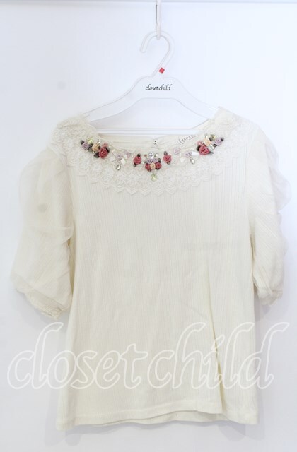 axes femme / 巻きバラのふんわりチュール袖プルオーバー M キナリ O-25-11-28-076-AX-TO-OW-OS