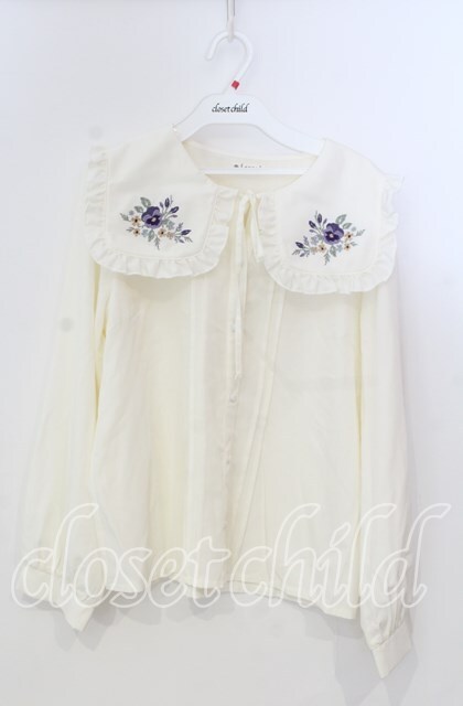 axes femme / パンジー刺繍BIG襟ブラウス M キナリ O-25-11-28-084-AX-BL-OW-OS